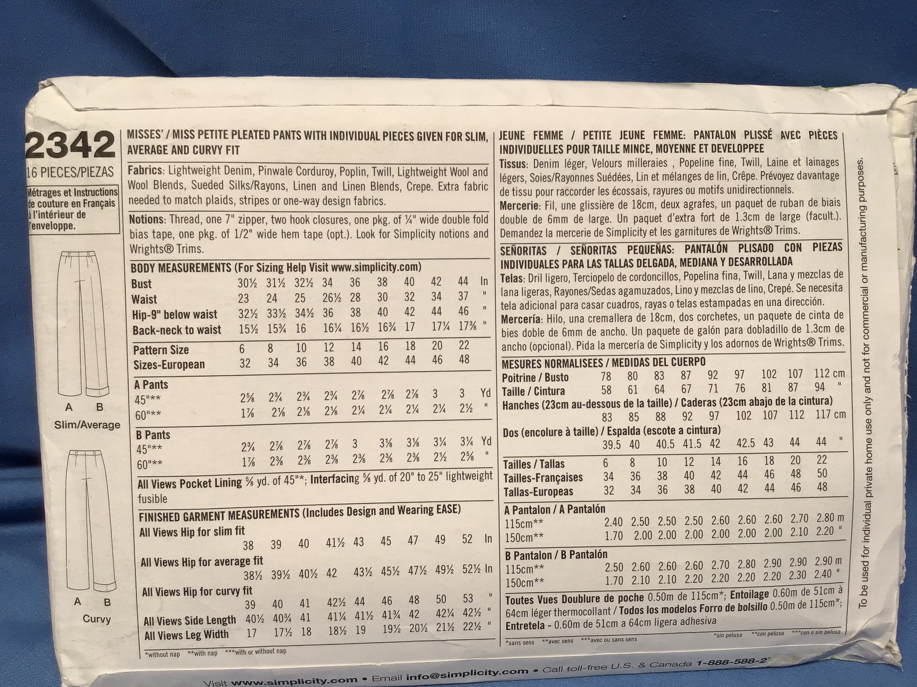 Simplicity Amazing Fit Sewing Patterns 2342 Pants 2475 Etsy Uk